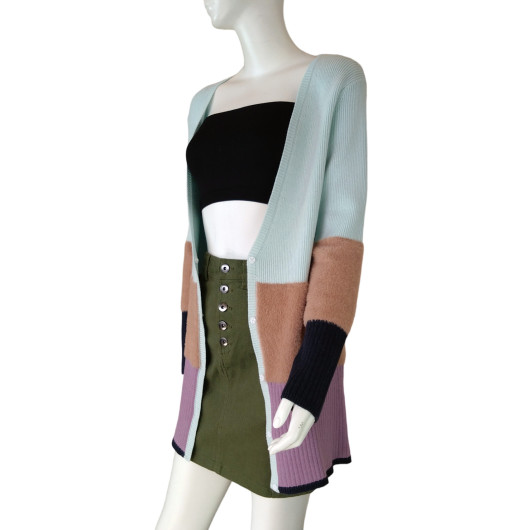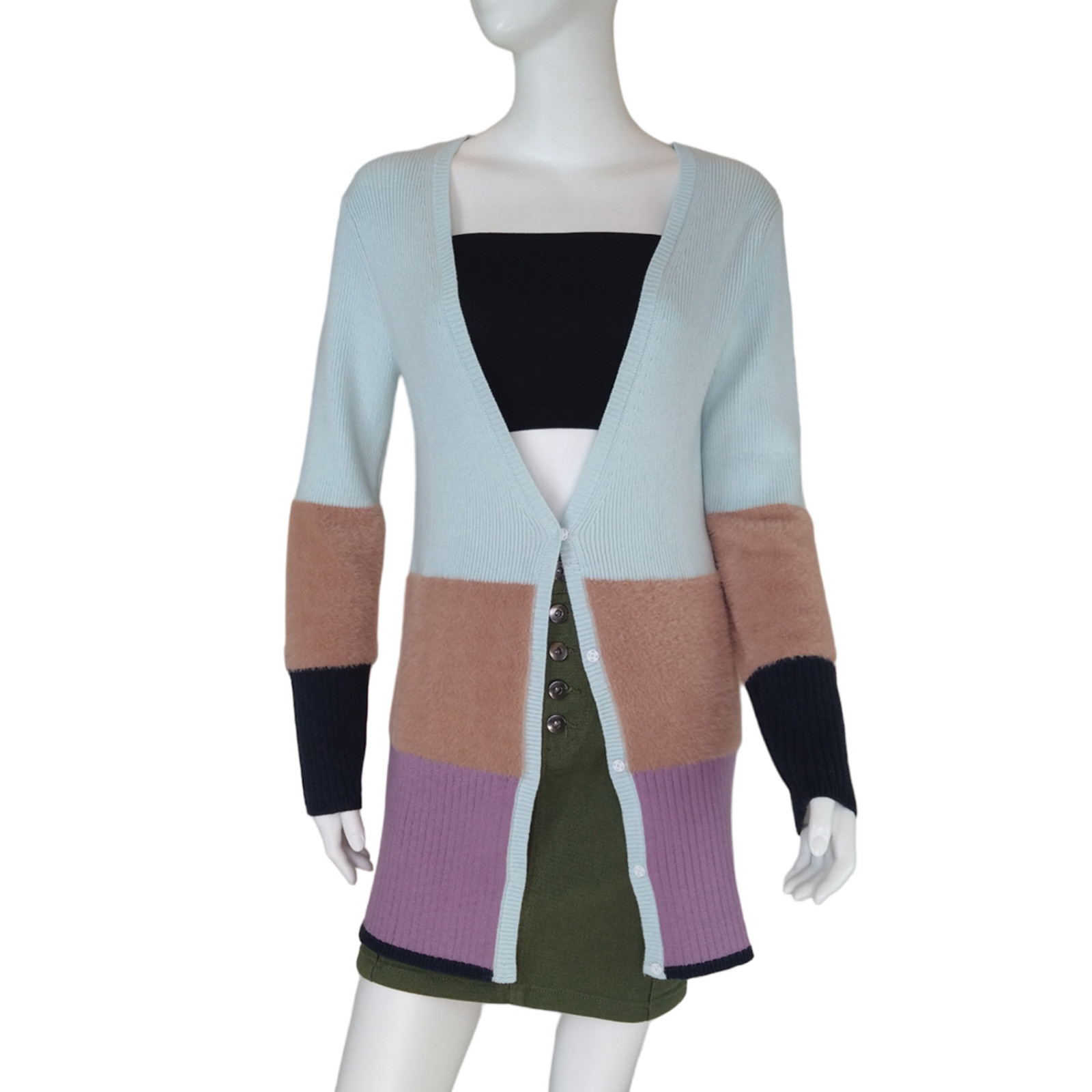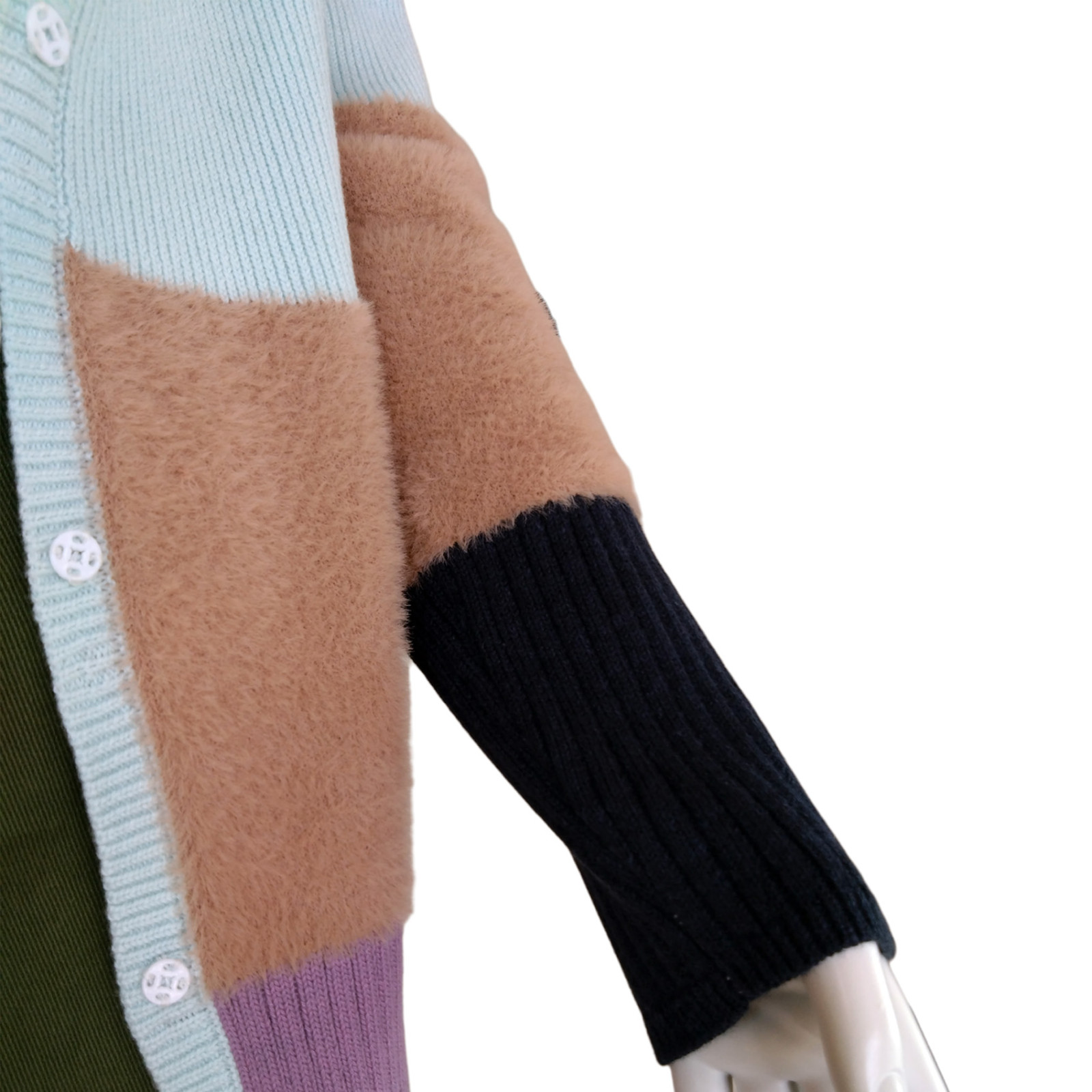 55%ACRYLIC 45%COTTON + 100%POLYAMIDE KNITTED CARDIGAN HAIRY YARN 7GG