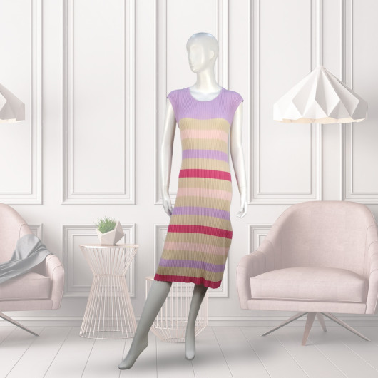 54%VISCOSE 28%POLYAMIDE 18%LINEN KNITTED DRESS STRIPE 12GG